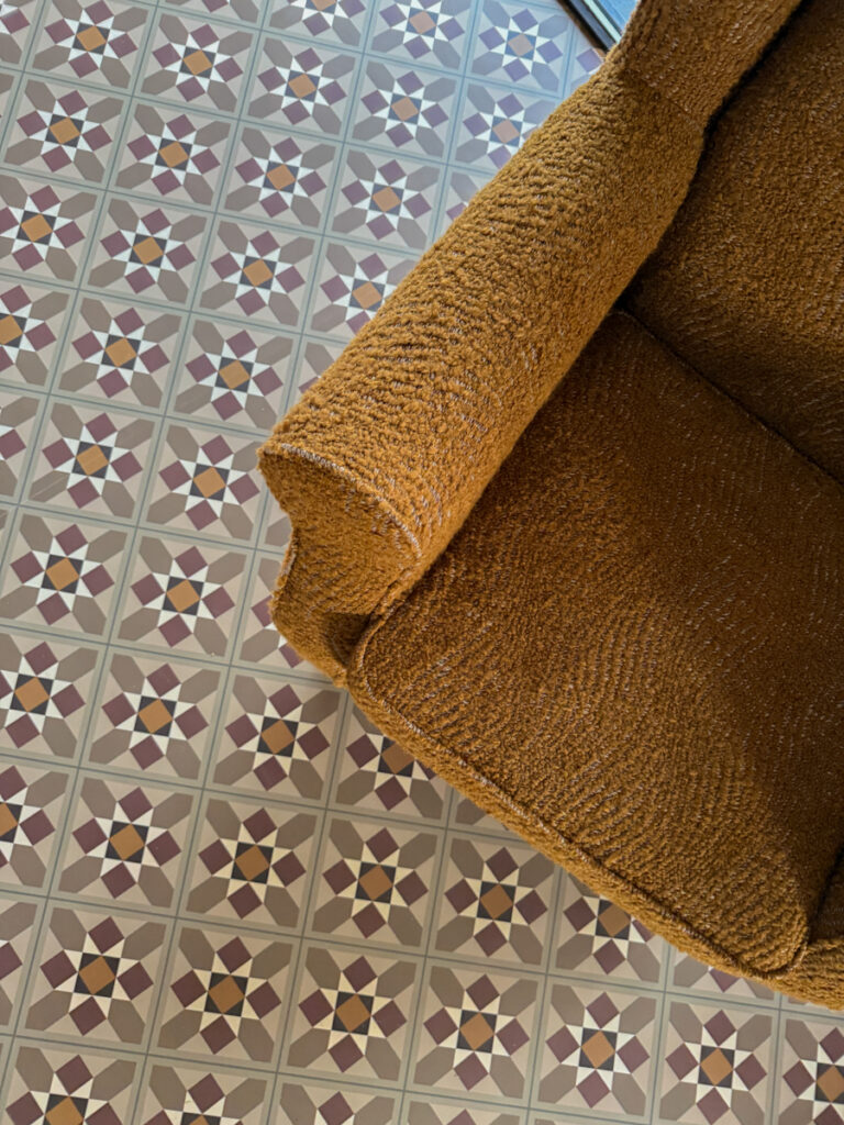 De bewoners bij Wonen bij De Familie hebben een zorgzwaarte van CIZ-indicatie 5 of hoger. De organisatie biedt een particulier alternatief voor het traditionele verpleeghuis. ‘We zien dat het ook anders kan,’ vertelt Eveline. ‘Zorg hoeft niet kil of institutioneel te zijn. Het mag gezellig zijn, warm. Dat vraagt om doordachte keuzes in inrichting en materiaal, die esthetiek en functionaliteit combineren.’ In elke locatie wordt een concept uitgewerkt dat aansluit bij de identiteit van het huis én zijn bewoners. Voor de Tuinkamer is er gekozen voor een Engels ‘herenkamer-thema’, sfeervol en huiselijk tegelijk.