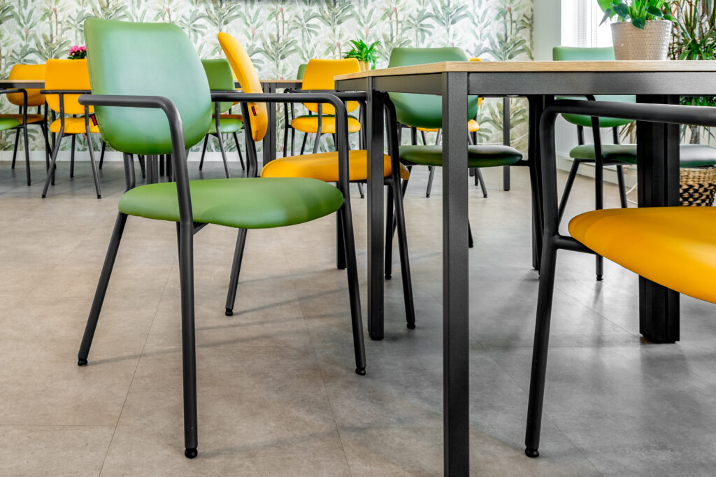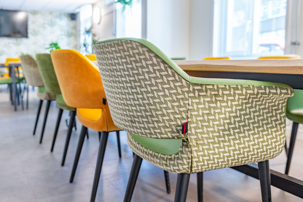 “Co-creatie stond centraal in het proces,” vertelt Miranda. “Van stoelen tot vloerafwerking en kleurgebruik: bewoners en medewerkers hebben actief meegedacht. Dat vergroot het draagvlak en zorgt voor een interieur dat echt wordt gedragen.” Ze vervolgt: “We zochten naar balans tussen robuuste materialen en een zachte, huiselijke uitstraling. Akoestiek, verlichting en routing zijn zo ontworpen dat rust en overzicht ontstaan, terwijl de ruimtes uitnodigen tot ontmoeting.”