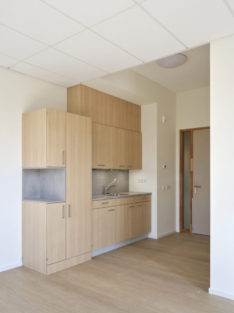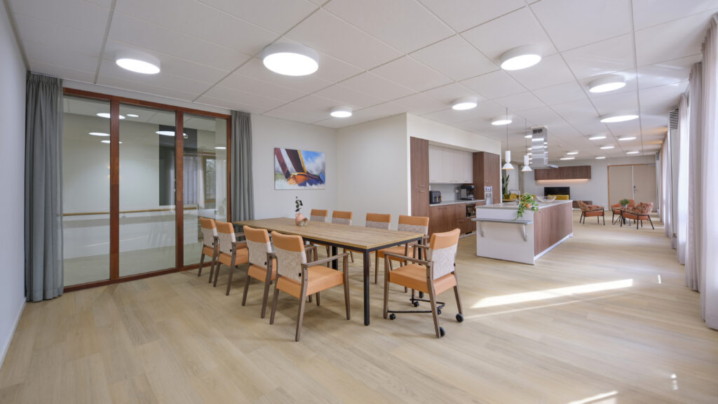 Voor Alliade was het essentieel om een plek te creëren waar mensen zich écht thuis voelen - juist in de laatste levensfase. ‘Onze cliënten hebben vaak complexe zorgvragen en zijn grotendeels niet zelfredzaam,’ legt Cobi van der Weg, Ontwikkelaar Vastgoed Alliade, uit. ‘Dan is het des te belangrijker dat de woonomgeving toegankelijk, warm en licht is.’ Projectleider Vastgoed, Facilitaire service en Inkoop Alliade Hendrik van Veen vult aan: ‘We hebben gekozen voor een ruimtelijk ontwerp met veel lichtinval. Dat maakt het gebouw prettig om in te wonen én te werken.’