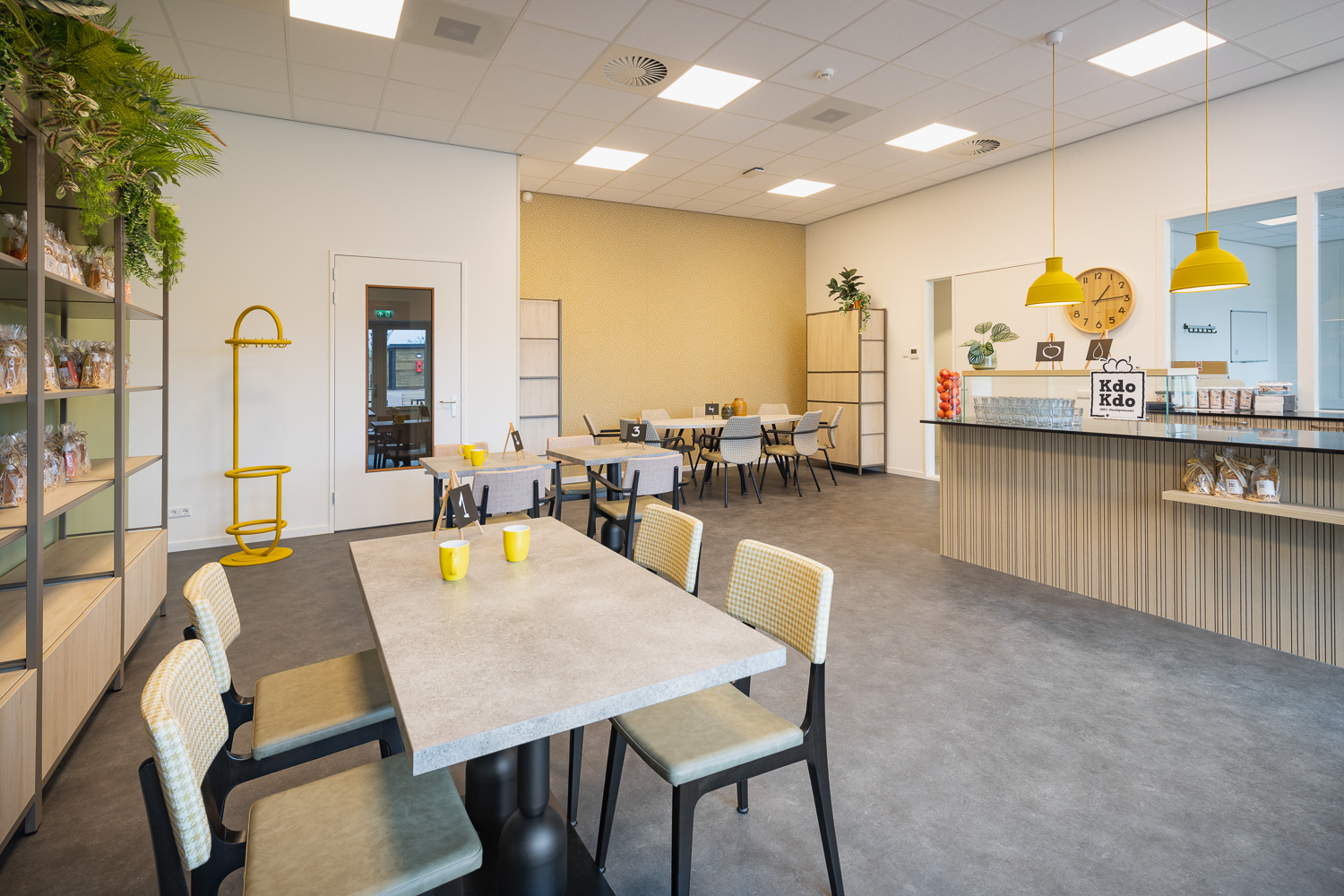 Het hart van de dagbesteding is KdoKdo, een winkel en horecaplek waar producten worden verkocht die cliënten uit heel Zeeland zelf hebben gemaakt. Bezoekers kunnen er bovendien terecht voor een kop koffie met gebak. ‘Voor ons was het belangrijk dat dit geen besloten ruimte werd, maar een uitnodigende plek waar cliënten en buurtbewoners elkaar op een natuurlijke manier ontmoeten,’ vertelt Rick Bouwens, beleidsmedewerker Zorg & Vastgoed en projectleider bij ’s Heeren Loo. ‘Dat is gelukt. De winkel heeft echt een open gezicht naar de gemeenschap gekregen.’