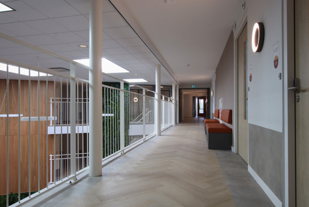 In het kloppend hart van Goes vind je een modern, veelzijdig zorgcentrum waarin Zorggroep Ter Weel focust op wooncomfort, privacy, zelfstandigheid, sociale interactie en een diversiteit aan zorgservices. Debbie van de Goor, accountmanager bij Lensen en Anny van Sas, designer bij deStudio van Lensen, hebben zorggedragen voor een aansprekend interieurconcept voor Residence 't Gasthuis. Debbie: ‘De gevels zijn een moderne vertaling van het historische Goes - geïnspireerd op de herkenbare Oudhollandse stijl - waardoor de architectuur mooi aansluit op het stadskarakter. Het interieur, in stadse sferen, valt samen met de uitstraling van dit exterieur.’